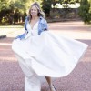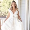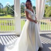 This GORGEOUS Jesus Peiro Dress was an absolute DREAM to wear! I had it shipped in from England to the U.S. as I couldn't find anything here like it! You will not find this one anywhere in the U.S. This Elegant Silk Mikado modified ballgown style is from the 2021 Cala Collection. The color is considered "Natural" which is a slight warm cream color...not white and not ivory...it's stunning. The unique cap sleeve and deep V neck are sweet with a bit of sex appeal. waist is accentuated with a tailored/flat bow and a stunning vintage looking brooch. The back of the gown is a low square back with small buttons. The dress is not heavy (I did not wear a Crinoline...but you definitely could if you want a bit fuller looking.) Best part...it has pockets! :) She is very couture looking...with the most incredible dressmaker details that set her apart from what you see all the time. I wish I could wear her again and again! The dress is in perfect condition, other than some dirt along the bottom edge from dancing. I am 5'5" and wore a 4" block heel....so if you are shorter than that...a bit of hemming will remove it (as in less than 1/2" overall.) I'd love this to go to the next woman that appreciates the beauty in a couture looking gown with all the simple...but fabulous details!