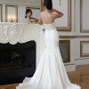 The Magnolia gown, cut in our sumptuous 4 ply silk crepe fabric, combines vintage and modern elements for a truly striking and timeless gown. The beautifully draped bodice leads way to a dramatic fit and flare skirt with elongating side flounce seams. Covered buttons down the back of the gown add a final classic touch.