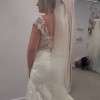 This was purchased as a sample from a bridal store and has been professionally dry cleaned. No alterations made.