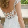 Our Daisy wedding dress is what bridal dreams are made of. The elegant gown features an illusion bateau neckline with delicate cap sleeves, all covered in botanical-inspired embroidered lace and sparkle net designed to shimmer from all angles. The soft mermaid silhouette will show off your curves and the sheer open back is beyond beautiful.