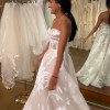 This is the Jordi wedding dress from Mira but I got it strapless (so does not have the one sleeve). You should be able to see multiple photos of it here. https://www.mirazwillinger.com/dress/jordi/?srsltid=AfmBOoo-gv34vmsXW8u7sqDDDaXpwoENc__lNdwkuEQ5ZC9U7rMN1Ldj