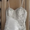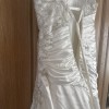 Stunning sweetheart neckline duchess silk dress with ruching and Swarovski crystals.