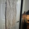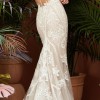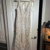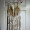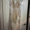 Beautiful cream colored under lay with ivory lace over the top. Cream button back with sheer design on back and low cut back. Accenting v neck cut in front with beautiful lace work.