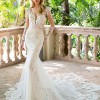 🕊️ Flattering fitted silhouette with a dramatic lace train