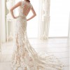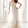 Sophia Tolli Y21656 - Fellini. Ivory & Maple. NEW WITH TAGS Sample Gown! Unaltered and unworn outside of trying on. Gorgeous sparkle! ✨️ Lace over stretch jersey fit and flare gown scattered with sequins. Features slight cap sleeves, scalloped deep V-neckline, illusion and scalloped lace back. Zipper closure trimmed with diamante buttons, hand-beaded rhinestone belt attached at natural waist, scalloped hemline, court train. Color: Ivory & Maple Style: Y21656, Fellini