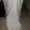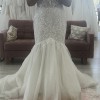 This enchanting fit and flare wedding dress promises to make your special day even more magical. Crafted from luxurious ivory lace that delicately captures the light, it features an exquisite straight neckline and a mid-back design that adds an air of elegance. The strapless silhouette beautifully highlights the shoulders and neckline, offering a classic yet contemporary look that suits brides of all styles.