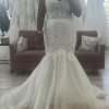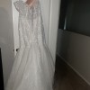 As you move, the subtle shimmer of sequins interwoven within the lace will create breathtaking moments, reflecting your radiance as you walk down the aisle. The floor-length design enhances a stunning figure, allowing for graceful movement while making a bold statement in every frame. With a fit that embraces your curves, this gown is poised to make you feel confident and utterly beautiful on your big day.
