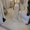 This striking Essense of Australia D2771IV wedding dress is crafted for the modern bride who seeks elegance with a touch of drama. The intricate lace design cascades beautifully down the body, sculpting an ultra-flattering fit and flare silhouette that enhances your natural shape while allowing for graceful movement.