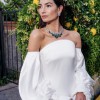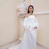 This Off The Shoulder Satin Gown by Carolina Herrera is a breathtaking choice for the modern bride seeking elegance with a touch of drama. Crafted from luxurious ivory satin, this floor-length gown beautifully hugs the body in a sophisticated sheath silhouette, creating a flattering shape that enhances your natural beauty.