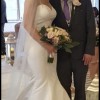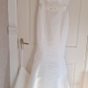 This is a beautiful fit and flare wedding dress, floor length with corset on back. I added straps for my wedding but it looks far better without. I also added a beautiful embroidered belt to the centre.