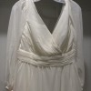 This stunning A-Line wedding dress from David's Bridal combines elegance with a touch of romance. The soft cream chiffon fabric cascades gracefully to the floor, creating a beautiful silhouette that flatters any figure. With its V-neckline, this dress highlights your collarbone and adds sophistication to your look.