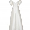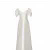 An Over the Moon exclusive with emerging designer Lesea Berry out of New York. This dress was custom made for based on her Allison Dress. We added a fuller skirt and I added a bow attachment to the back of the gown that is detachable. This dress is 100% silk and one of a kind. It is tailored to my measurements but could be tailored down. This one of a kind unique dress would make for the happiest day!