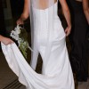 This dress is a stretch satin crepe, worn once and professionally dry cleaned, stored in a gown bag at all other times, no stains or faults on the garment.