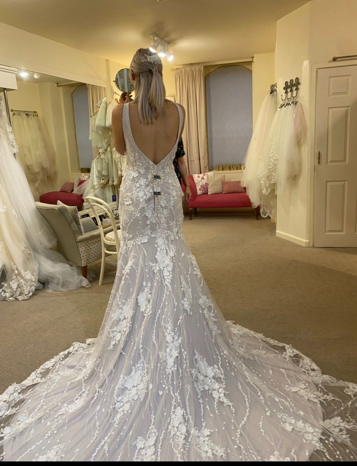 This dress has not been altered it’s absolutely stunning it has slight mauv lining giving it the most incredible colour. I never got to wear it so it’s stayed in the bag for the last 3 years